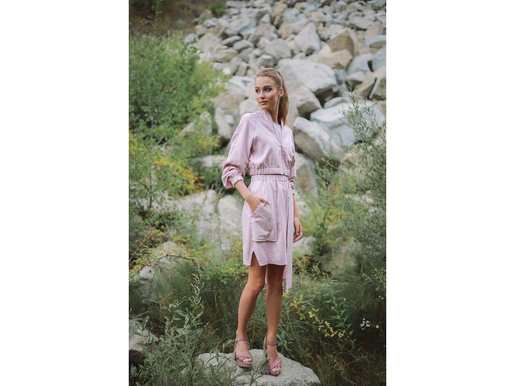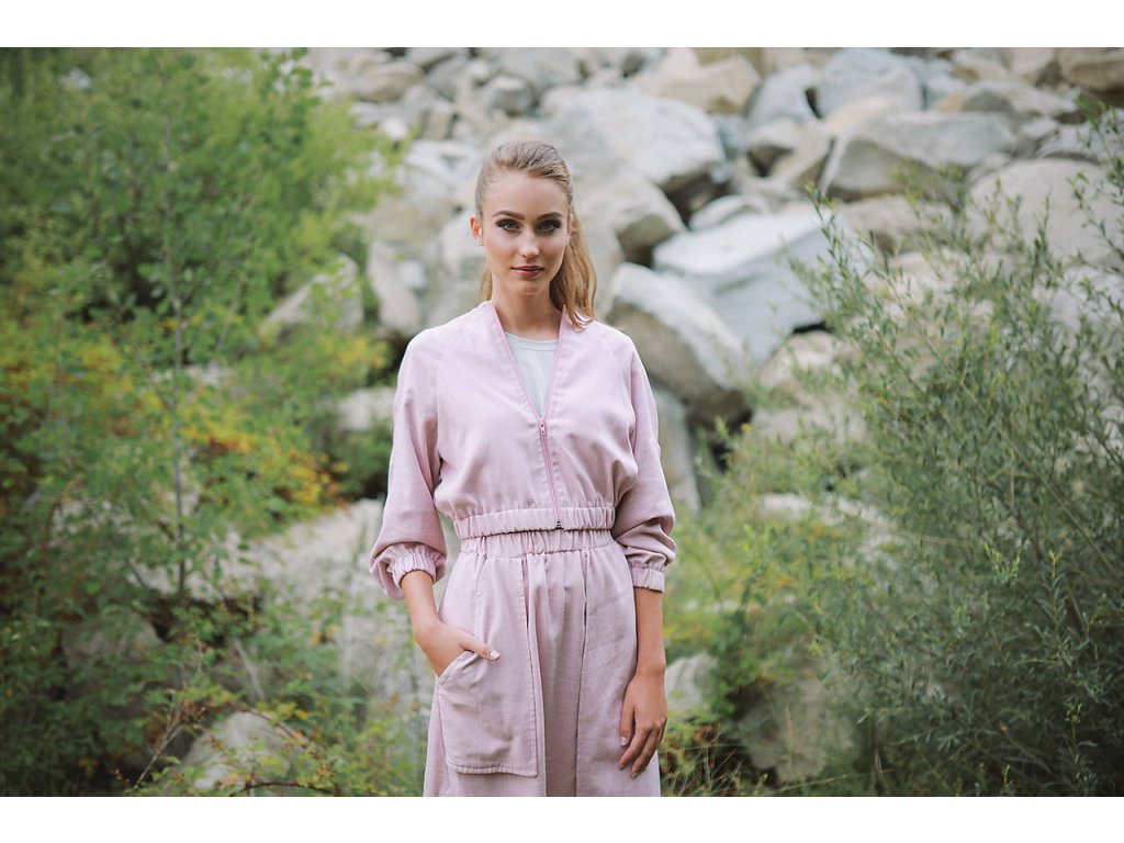 Bombera má voľný raglánový strih do pása a zapínanie na zips. Vyrobená je z prírodného materiálu - spojenie ľanu a viskózy (60% ľan, 40% viskóza), ktorý je mimoriadne vhodný na teplé jarné a letné dni. Ľanový materiál je dokonale savý a vzdušný. V teple príjemne chladí a odvedie prebytočný pot.