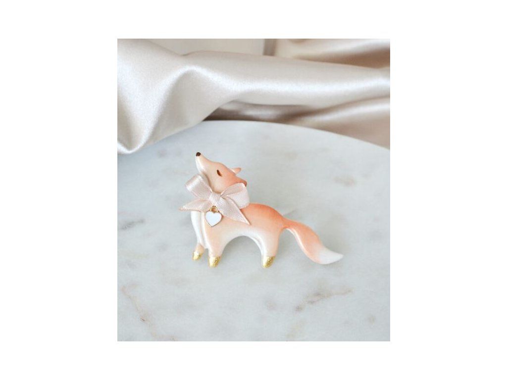 Brošňa líšky s mašličkou a srdiečkom.
