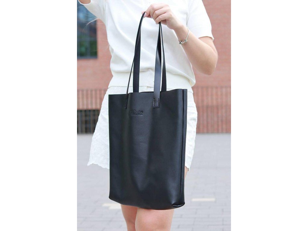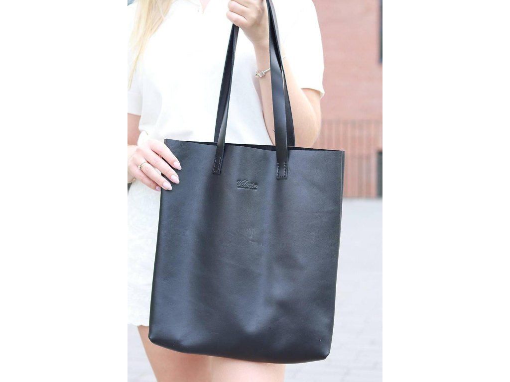 Čierna kožená shopper kabelka, hladká koža