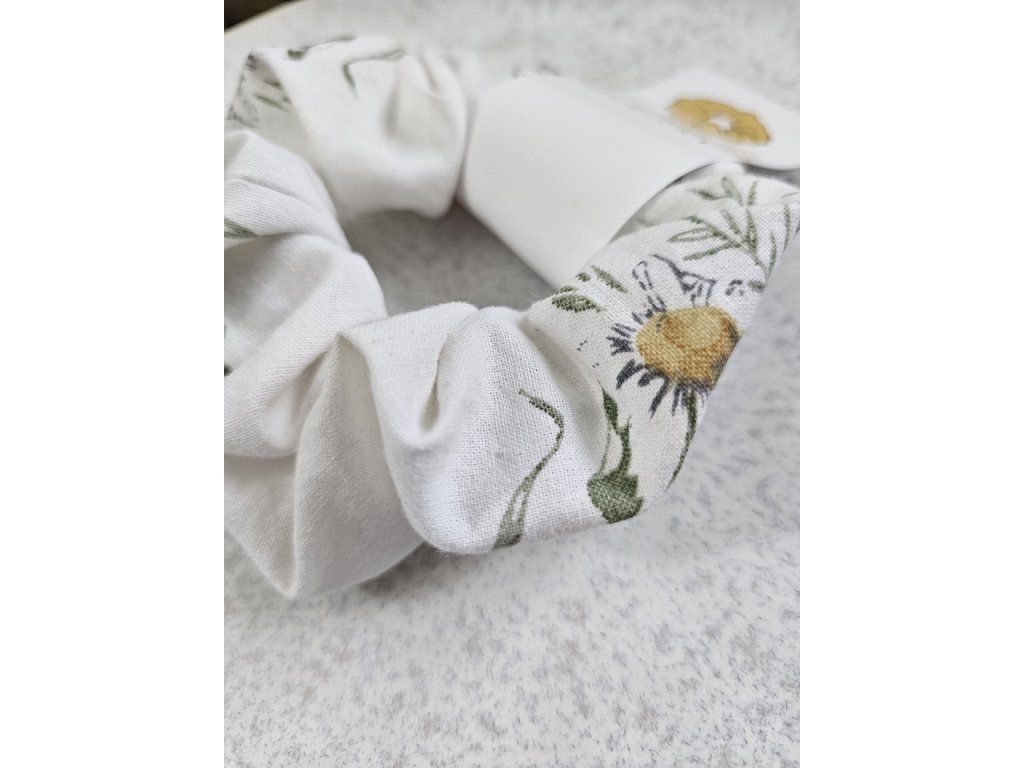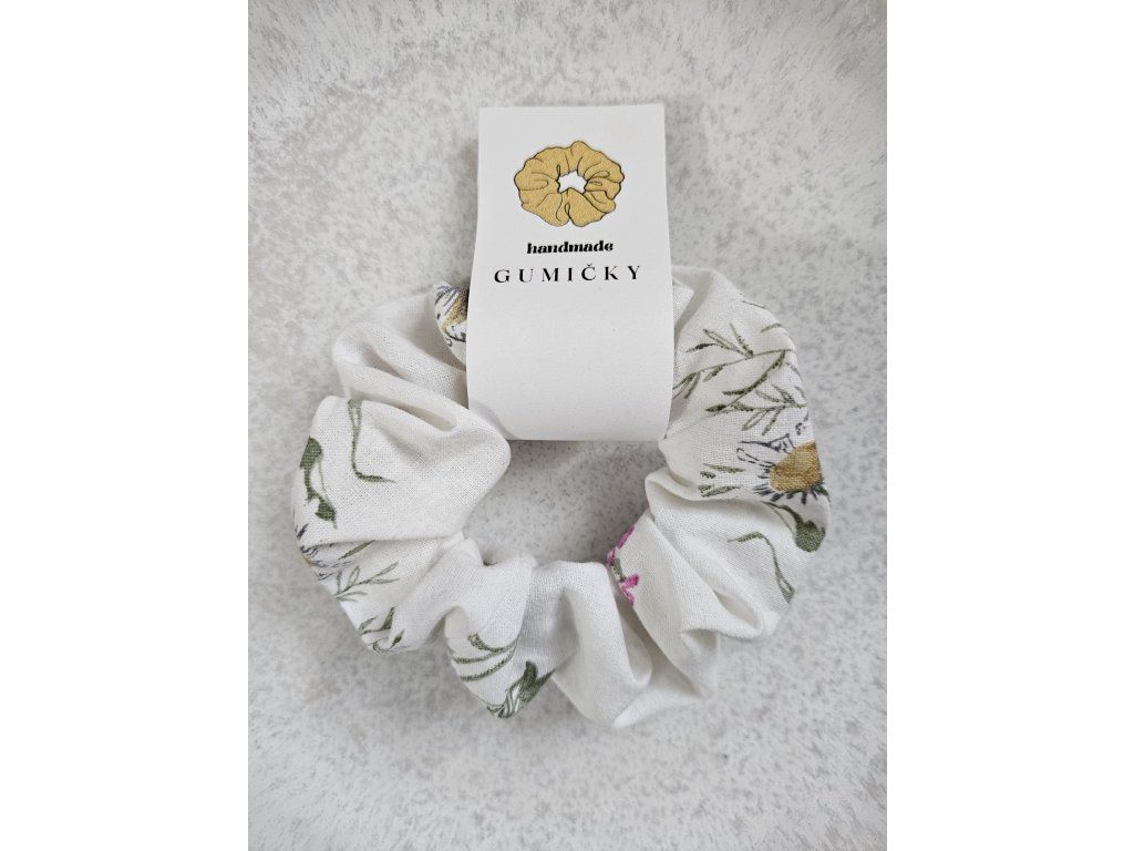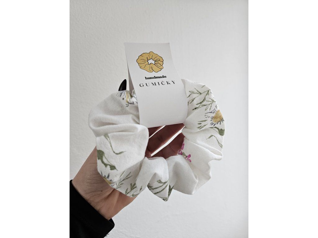 Gumička schrunchies biele kvietky