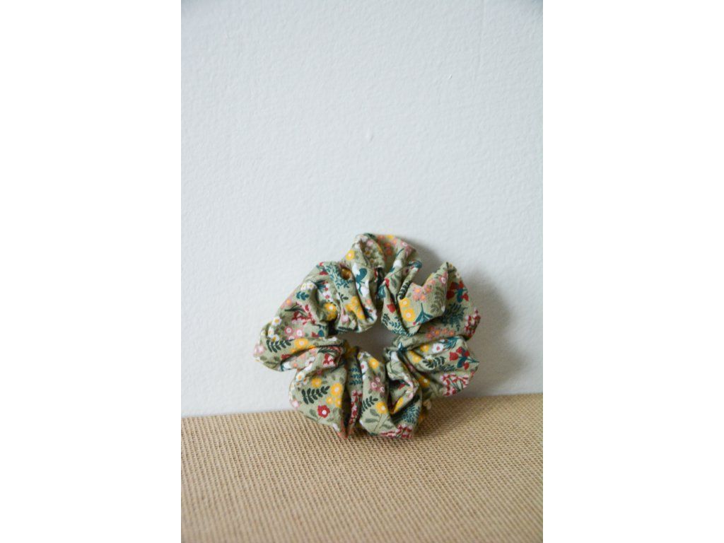 Gumička schrunchies zelené kvietky