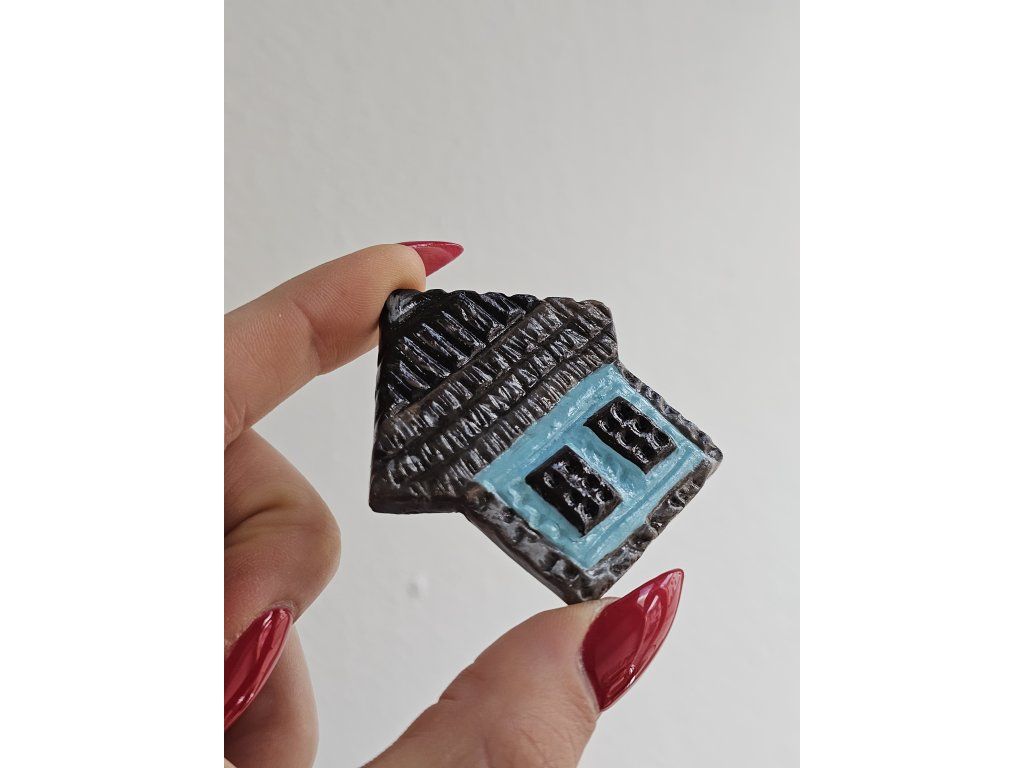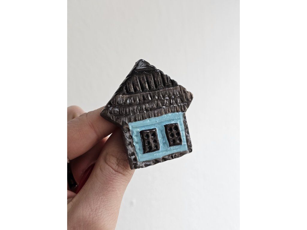 Keramická brošňa, domček, ručne modelovaná a maľovaná