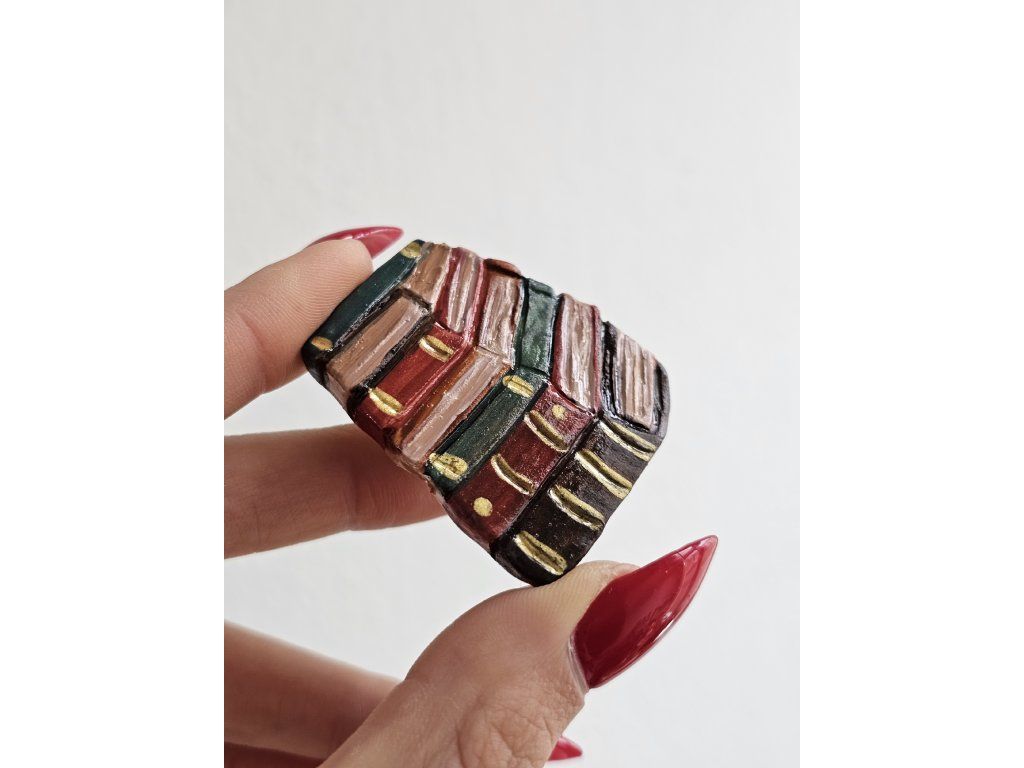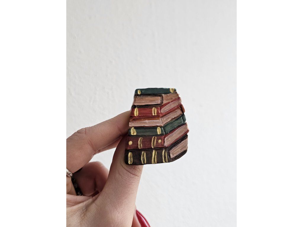 Keramická brošňa, knihy, ručne modelovaná a maľovaná