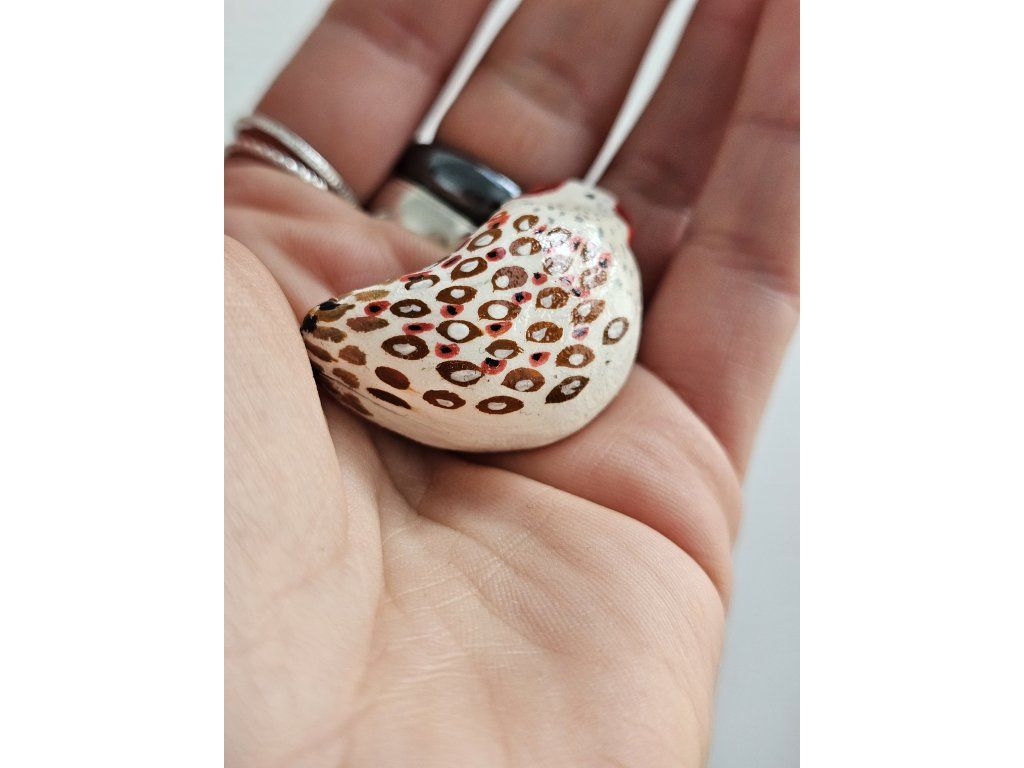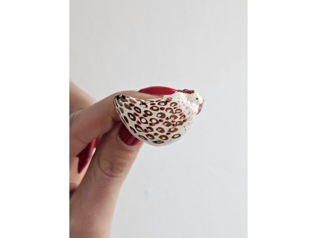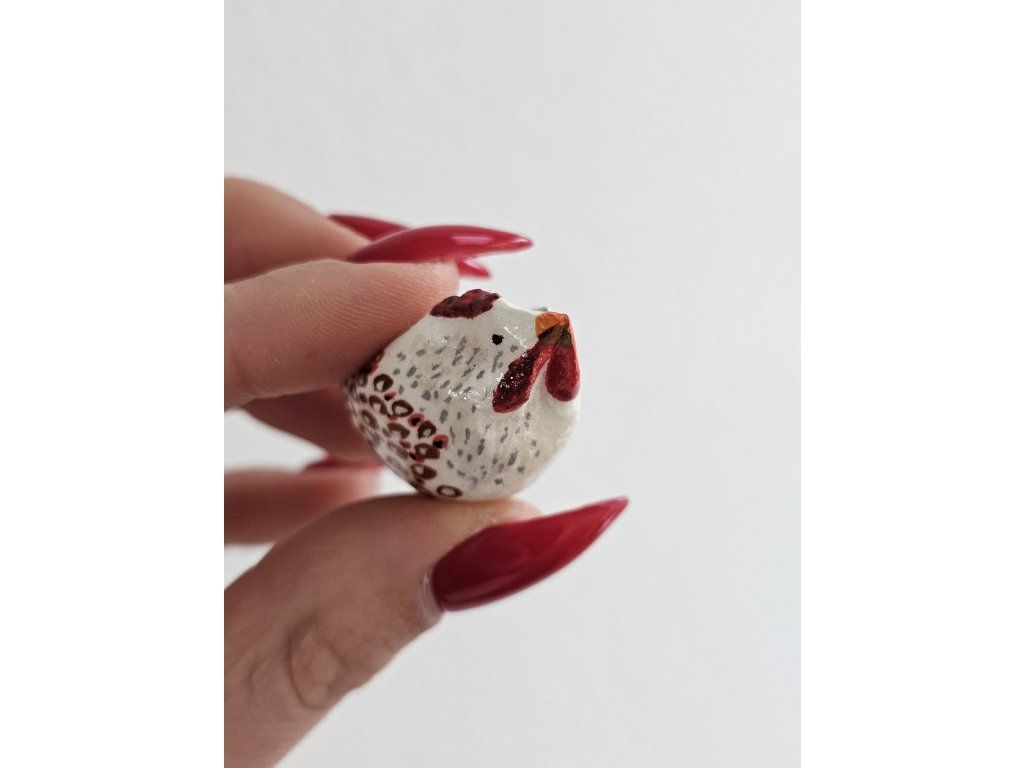 Keramická brošňa, sliepka, ručne modelovaná a maľovaná