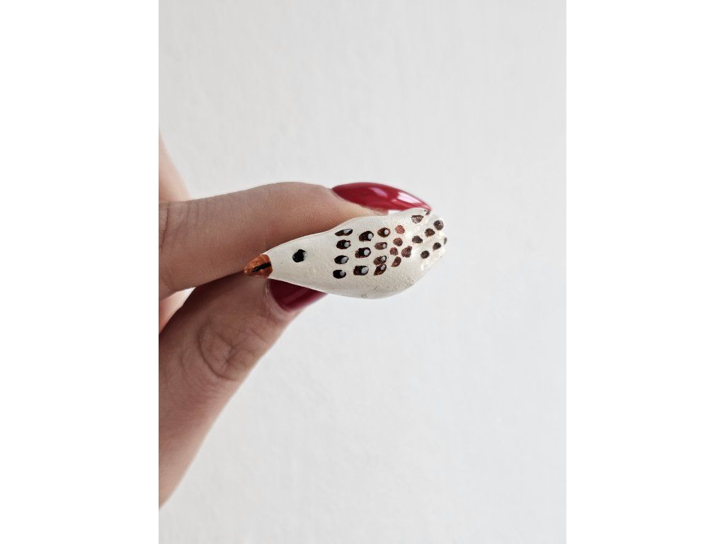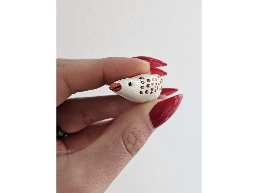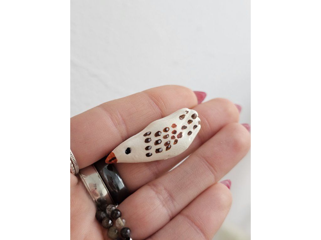 Keramická brošňa, vtáčik, ručne modelovaná a maľovaná