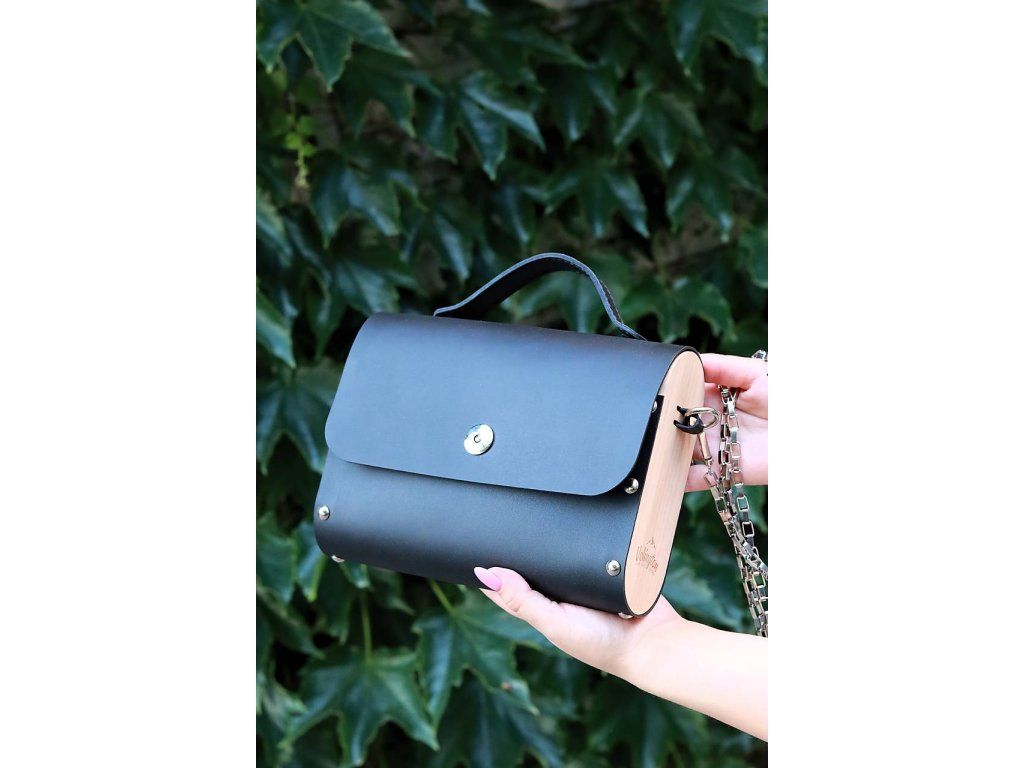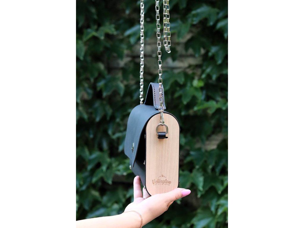 Malá, šikovná kožená kabelka, s ktorou si vytvoríte svoj vlastný štýl. Kabelky vyrobené z pravej hladkej kože drevenými bočnými vsadkami. Produkt je s retiazkou.