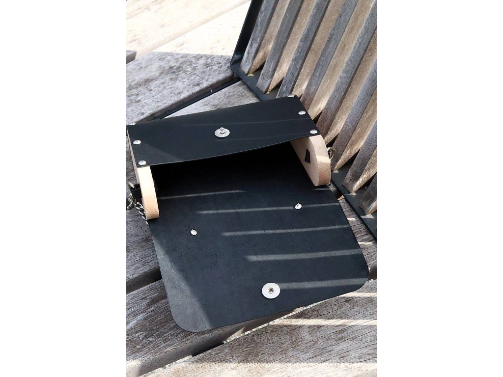 Kožená kabelka s drevenými vložkami, čierna