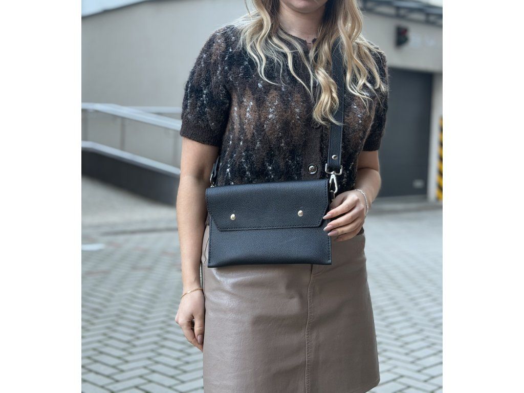 Priestranný vnútorný objem bez problémov pojme všetko potrebné. Má nastaviteľný popruh, vhodný na nosenie crossbody alebo na rameno.