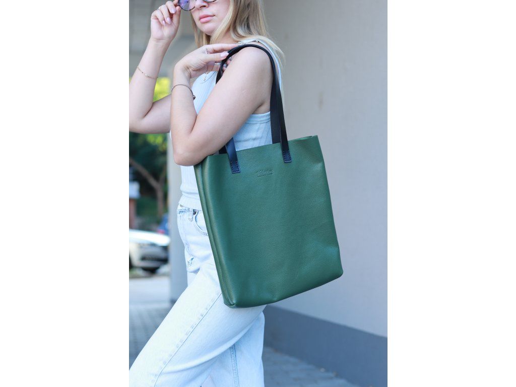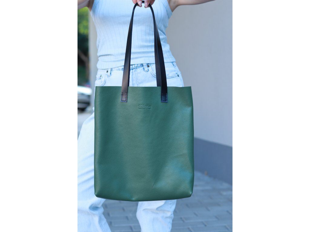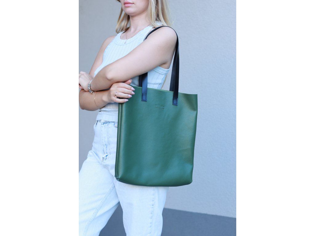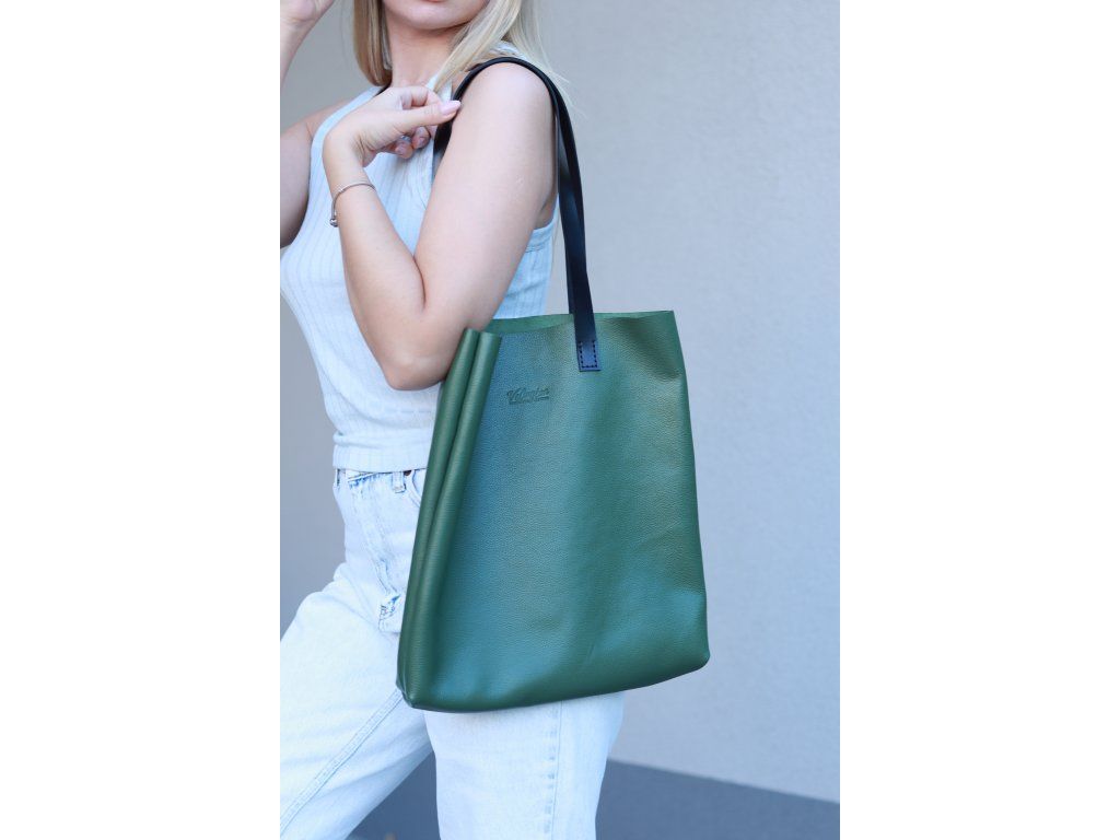 Kožená shopper kabelka, zelená