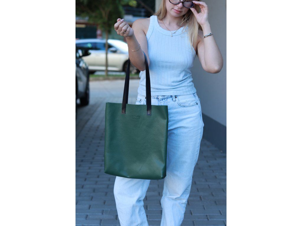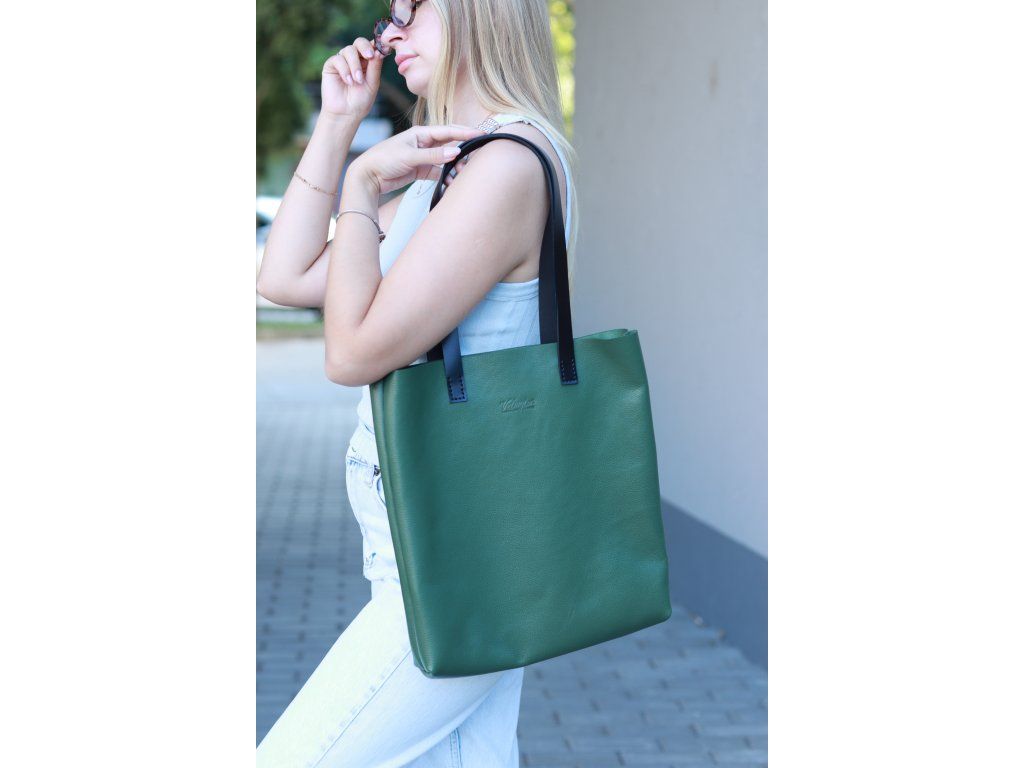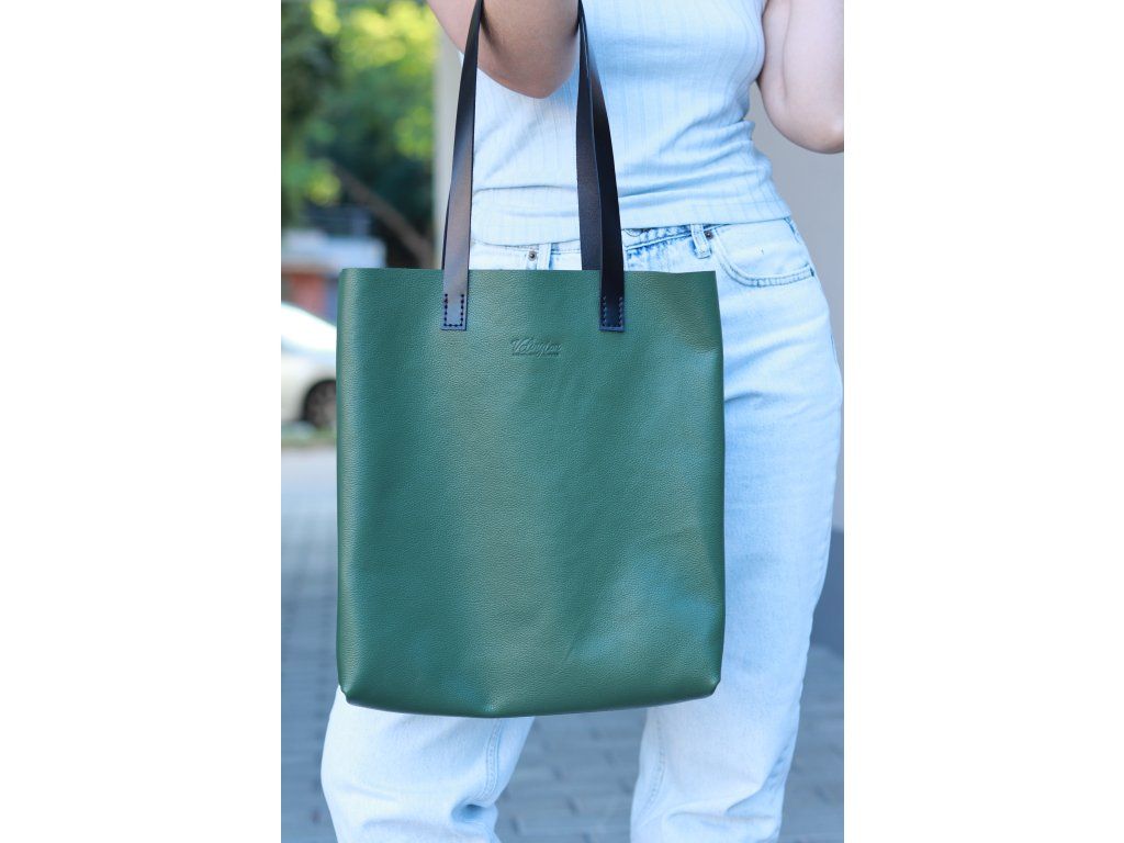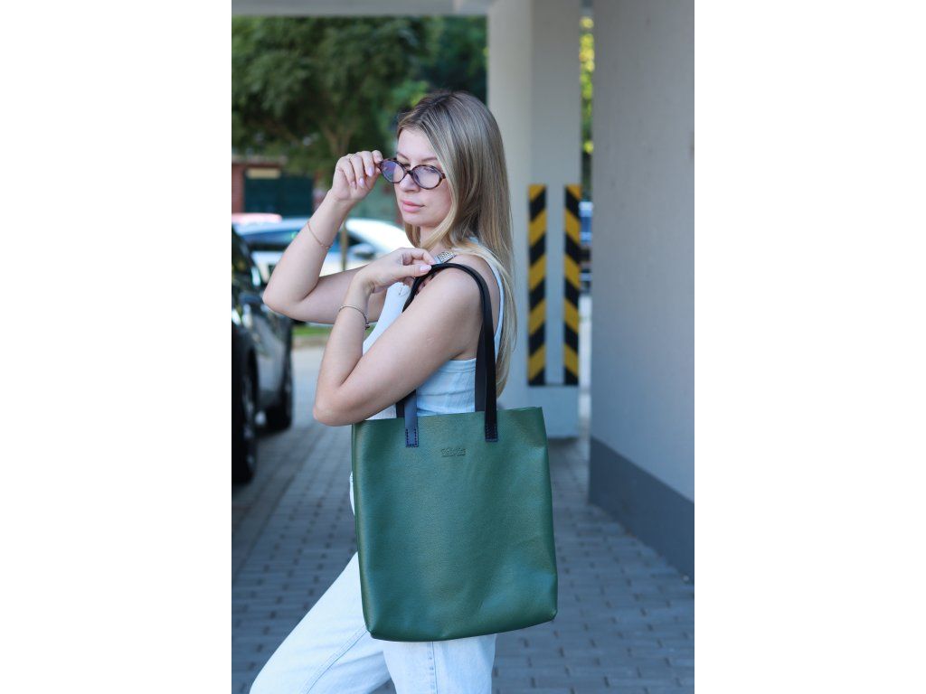 Kožená shopper kabelka, zelená