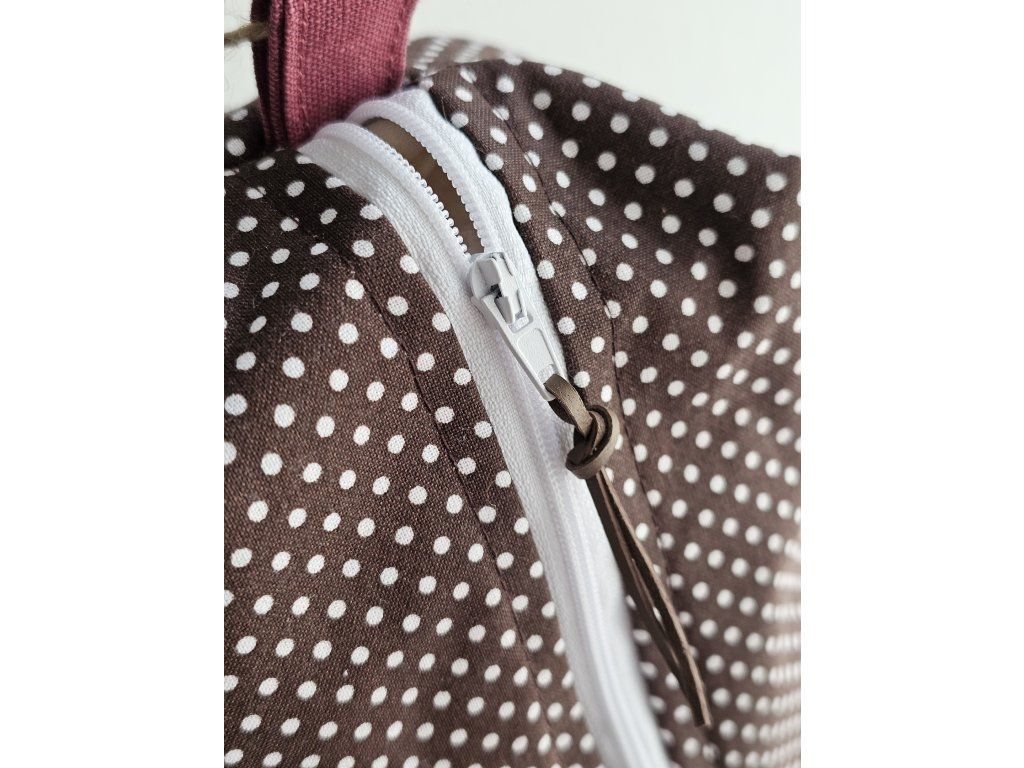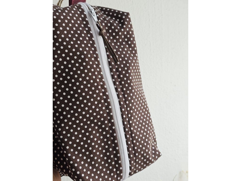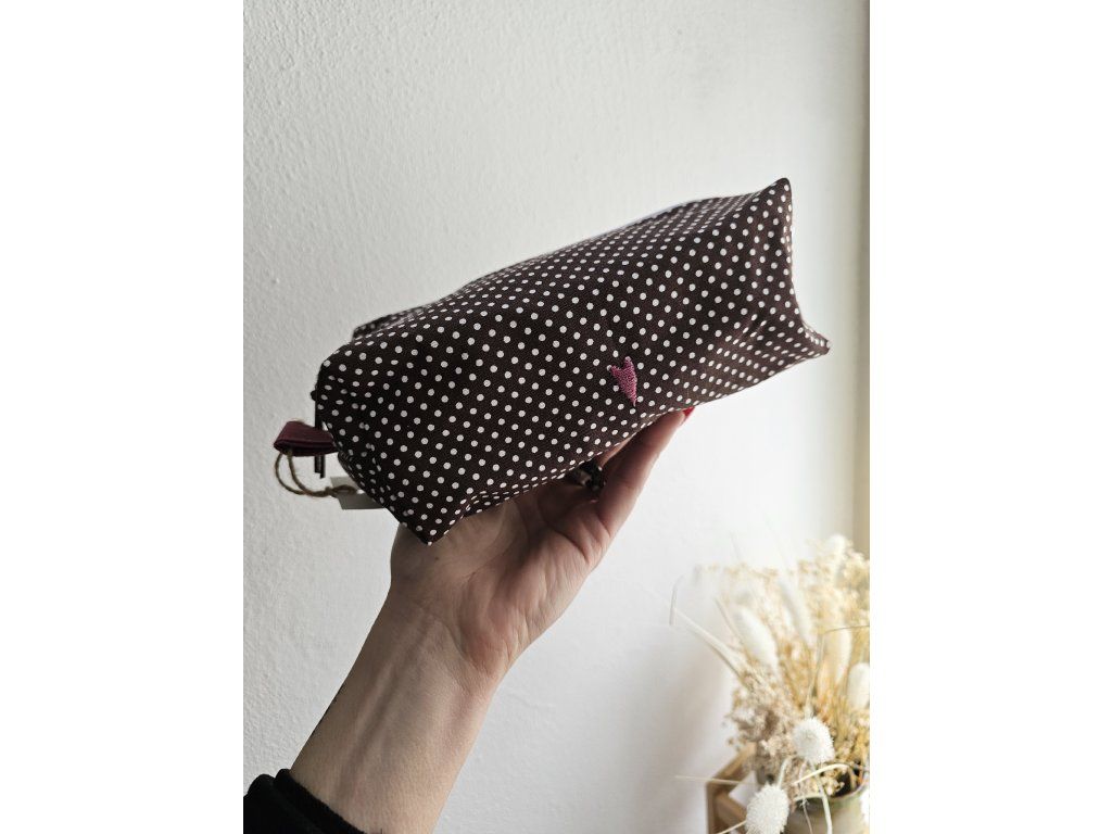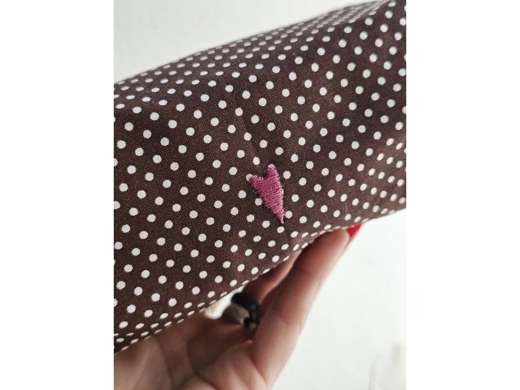 Látková kozmetická taštička s výšivkou srdiečka, bodkovaná