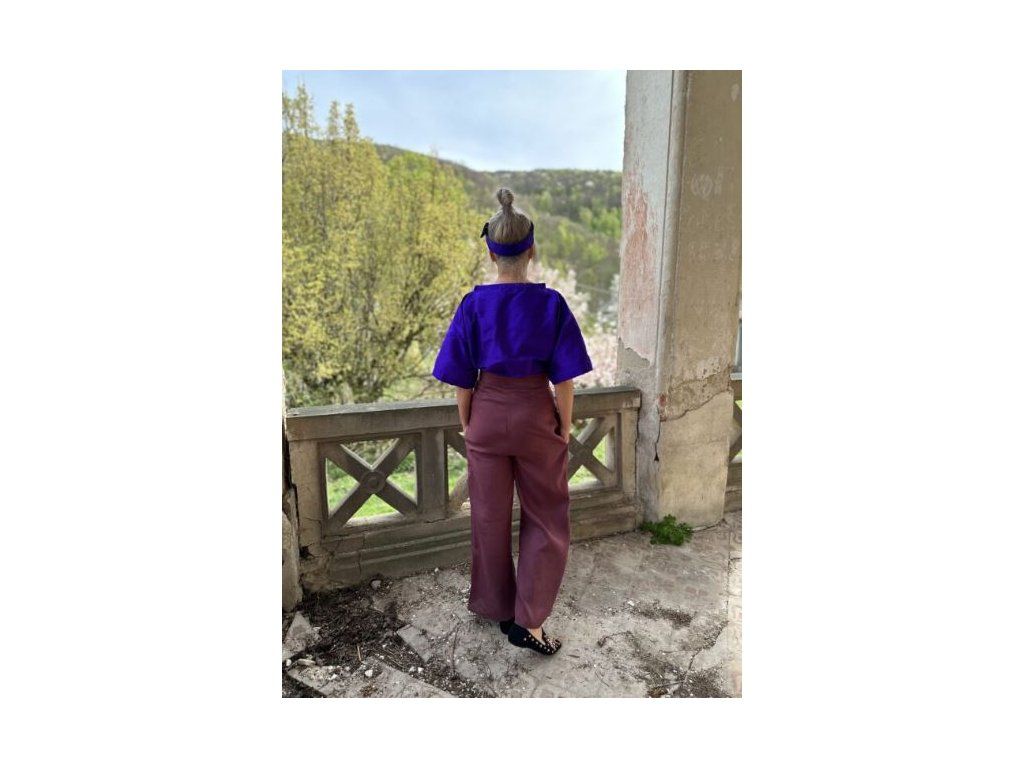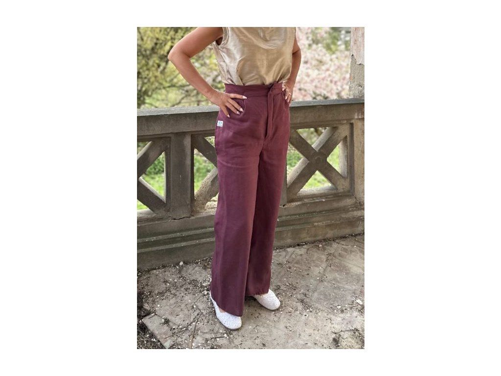 Ľanové vzdušné nohavice v príjemnej farbe ostružiny, s dvomi vreckami, kombinovateľné s rôznymi kúskami oblečenia.