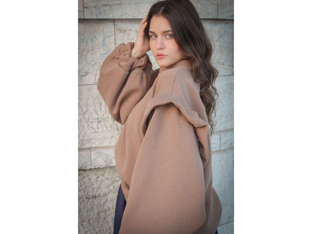 Zahaľte sa do neprehliadnuteľného komfortu s mikinou Zora – modelom, ktorý prepája oversize siluetu, výnimočne bohaté rukávy a sofistikovaný dizajn. Jej objemná forma pôsobí ležérne, no zároveň veľmi žensky a moderne.
