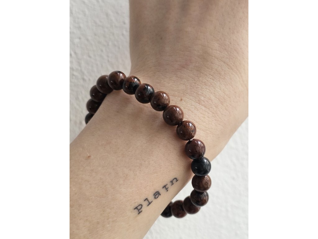 Mahagónový obsidián je silný ochranný a uzemňujúci kameň (sopečné sklo), ktorý prináša harmóniu, silu a motiváciu. Vyznačuje sa jemnejšími vibráciami ako čierny obsidián, pomáha odstraňovať energetické blokády, potláča strach a zvyšuje sebadôveru.