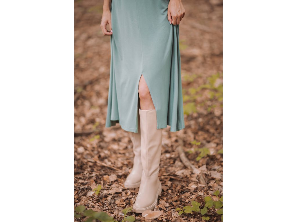 Ďalší bambusový kúsok do Vášho kapsulového šatníka - rolákové šaty STELLA s dĺžkou do polovice lýtok a predným rázporkom. Vo vrchnej časti tela priliehavé, od pása rozšírené. Strih, ktorý krásne lichotí postave a zvýrazňuje siluetu.