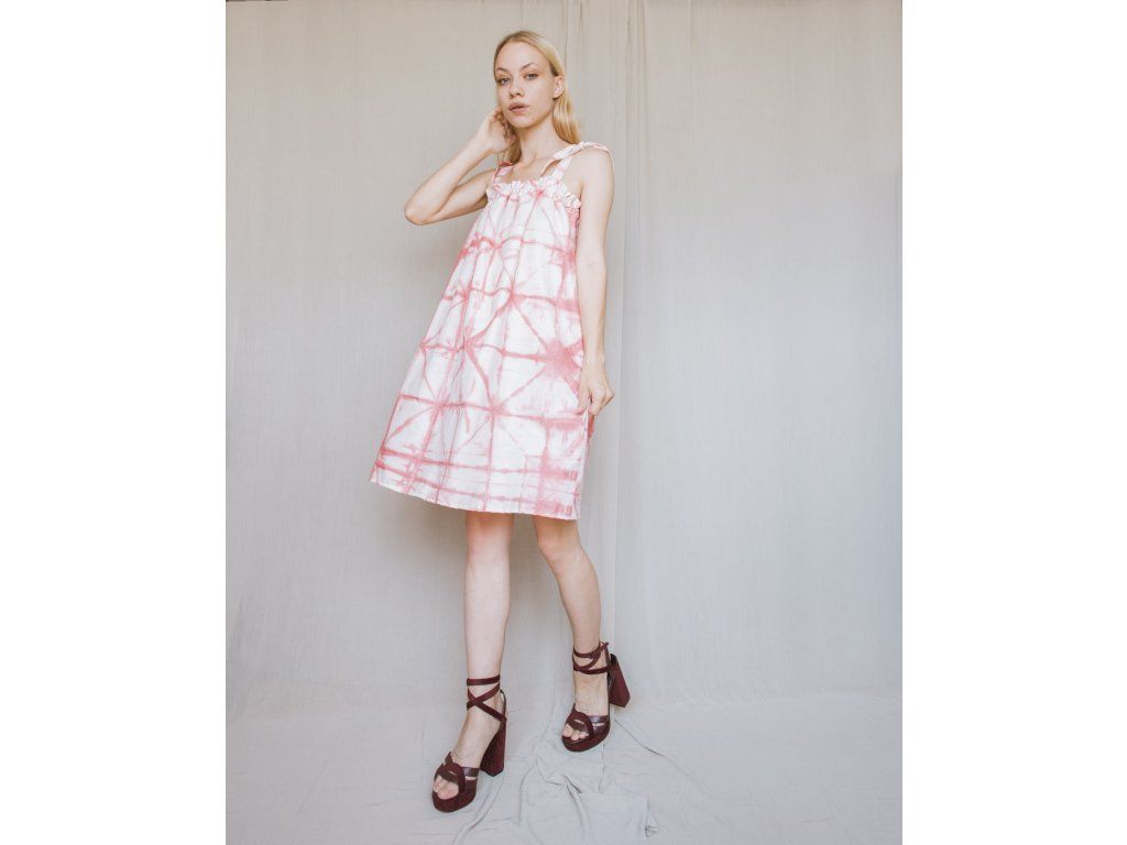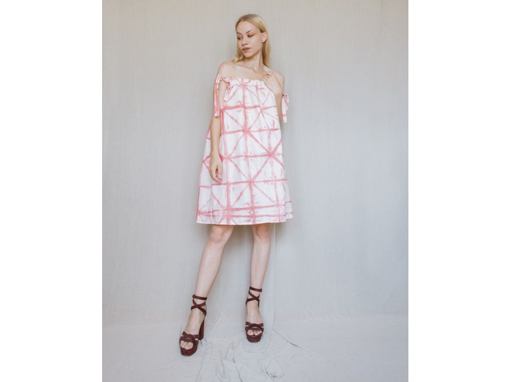 Letné ružové šaty na ramienka, ktoré sa dajú prispôsobiť.