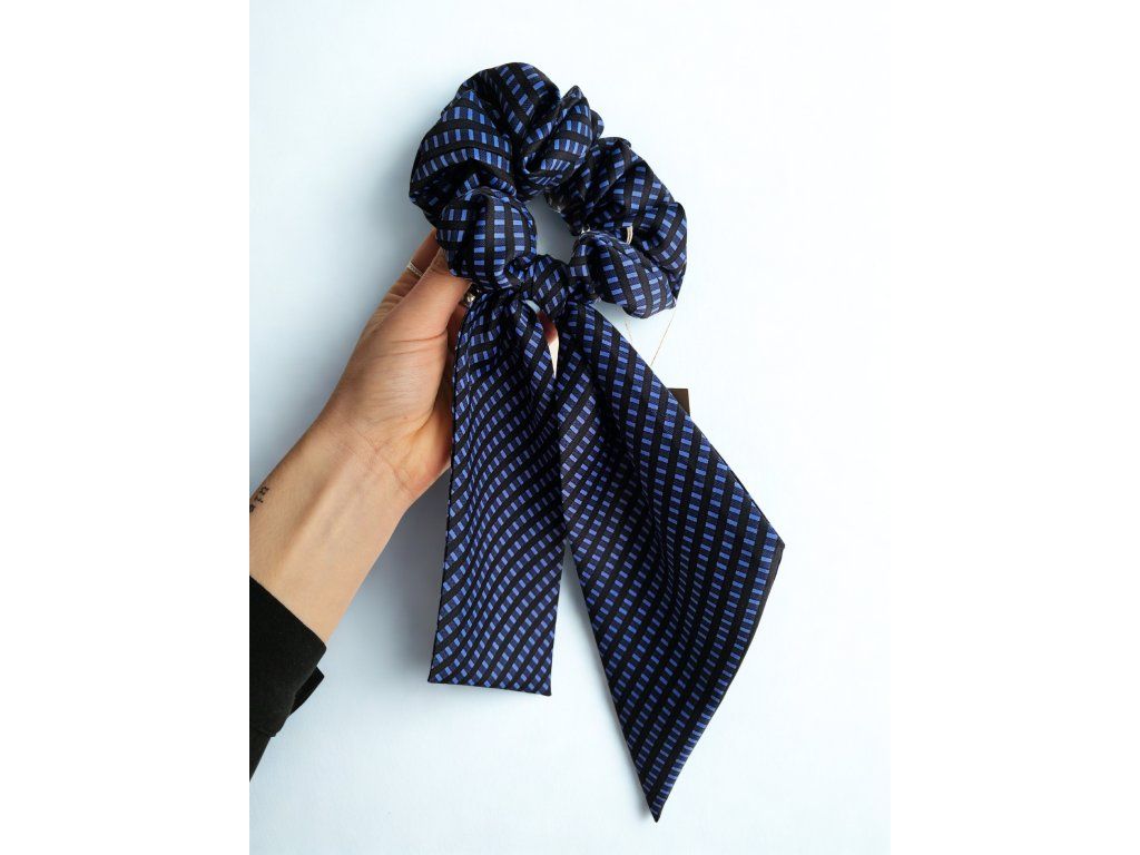Schrunchies, upcyklovaná kravata, modrá, vzor