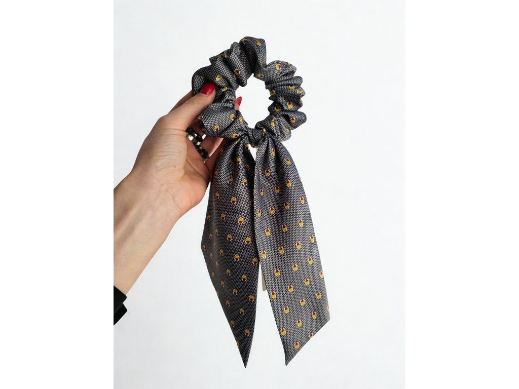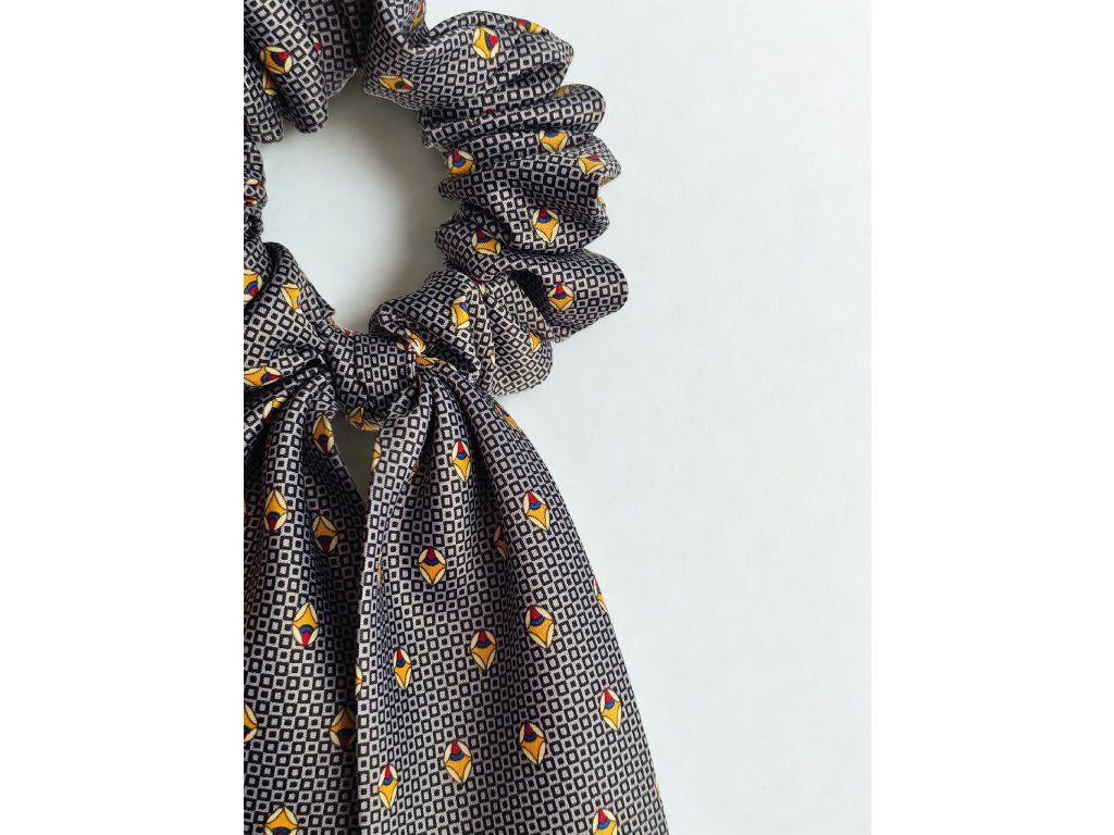 Schrunchies, upcyklovaná kravata, sivá, vzor
