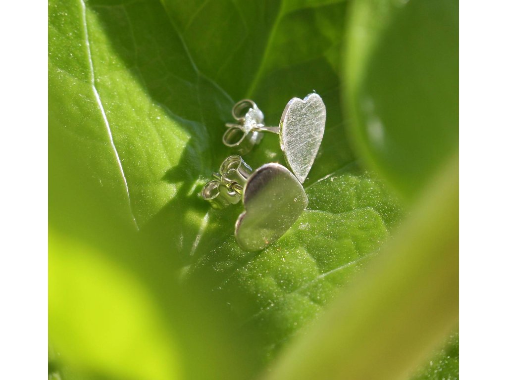 Rovné jednoduché srdce pôsobí jemne a má rozmer 9x9 mm. Zapínanie náušníc je na puzetku.