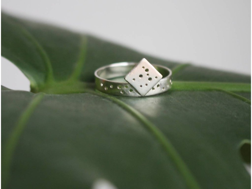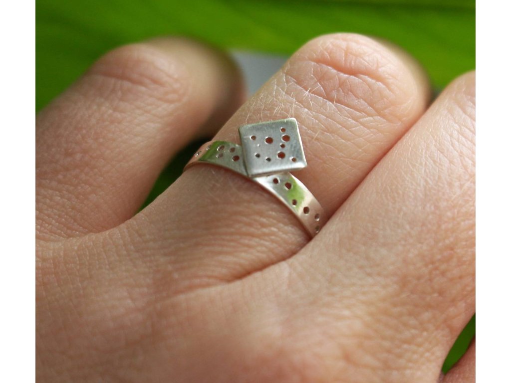 Výrazný strieborný 925/1000 prsteň tvorený štvorcom a hrubšou obrúčkou je vhodný aj na každodenné nosenie.