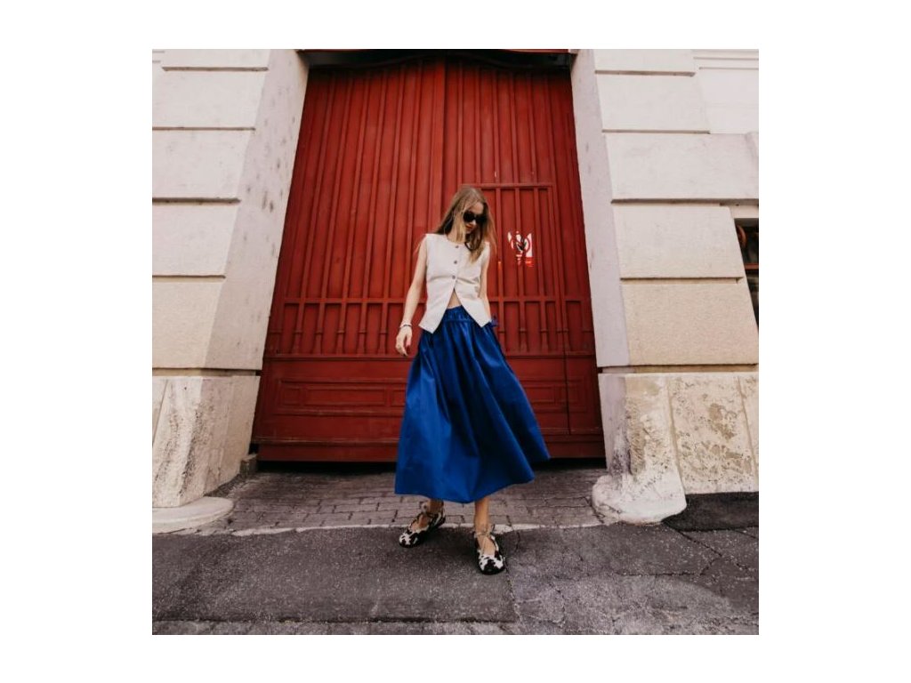 Táto elegantná kobaltovo modrá midi sukňa je perfektnou voľbou pre každodenné aj formálne outfity. Vyrobili sme ju zo 100% kvalitnej bavlny, ponúka maximálny komfort a priedušnosť a je ideálna na nosenie po celý rok. Sukňa má nadčasový strih, ktorý sa pohodlne nosí vďaka elastickej gume v páse a jednoduchej viazačke, ktorá z nej nerobí ďalšiu nudnú sukňu, ale skvelo ju oživuje.
