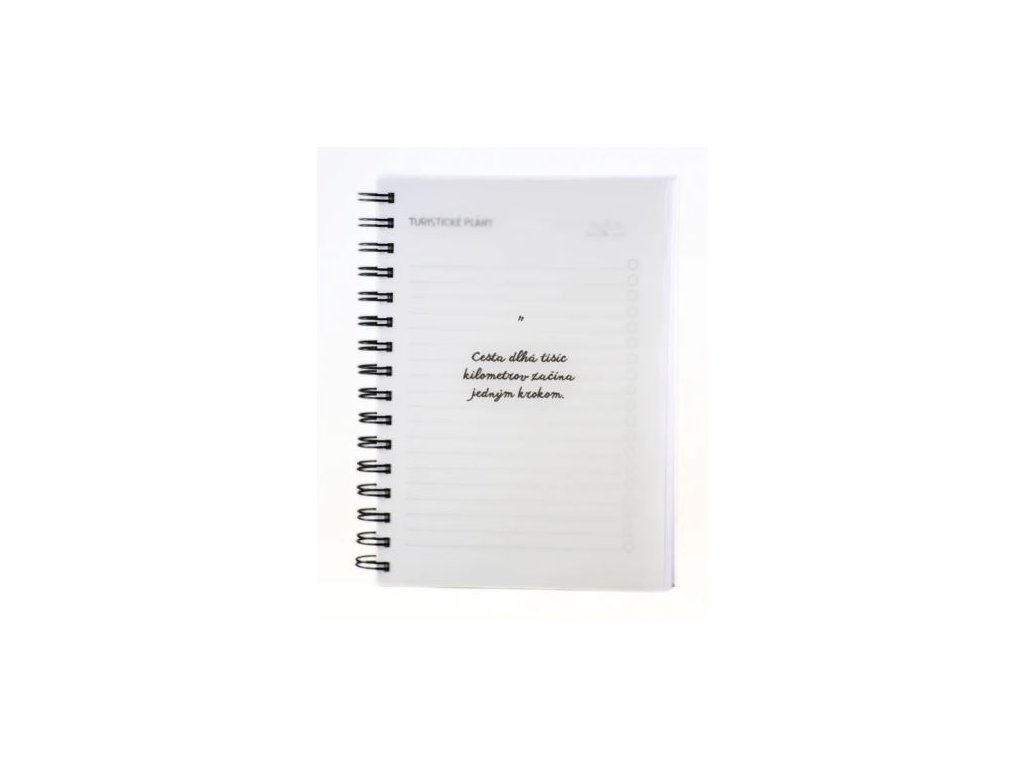 - 4 inšpiratívne citáty na priehľadnom papieri, ktoré rozdeľujú zápisník na sekcie: