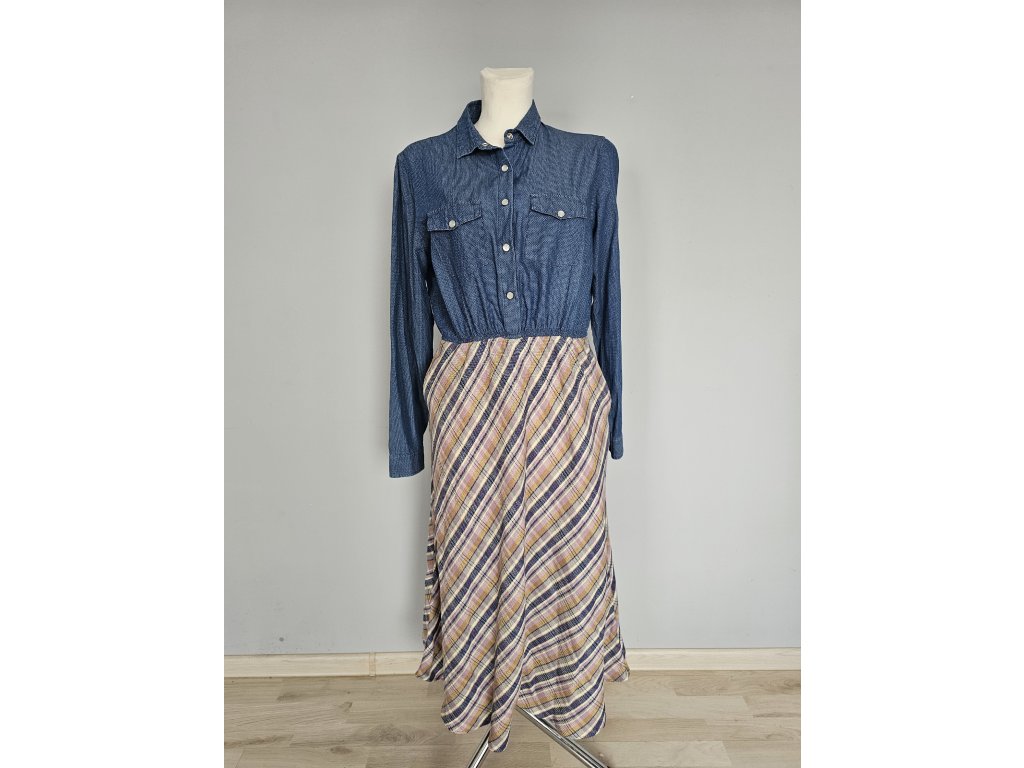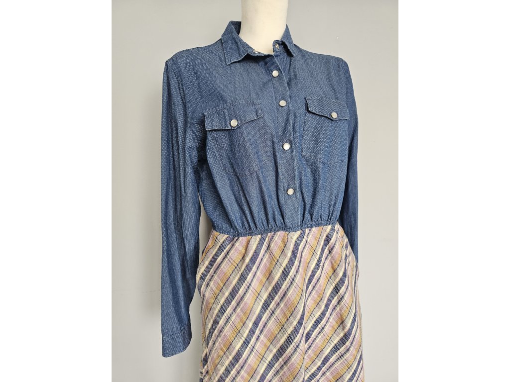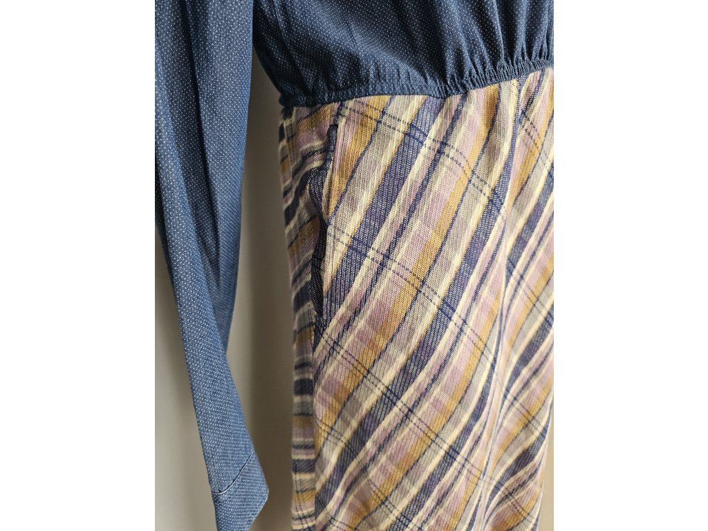 Upcyklované zelené šaty s vreckami a na zapínanie.
