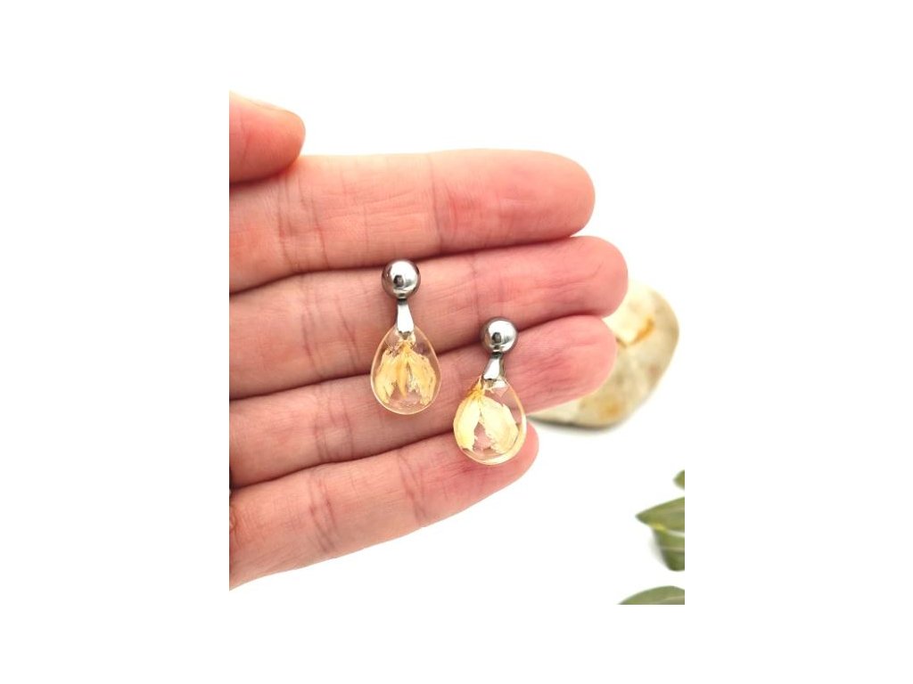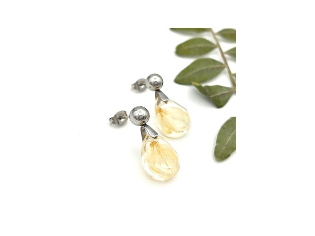 Milučké tzv. napichovačky (ktoré sú ale čiastočne visiace) na vaše ušká v sebe ukrývajú kvietok papuľky maslovej farby