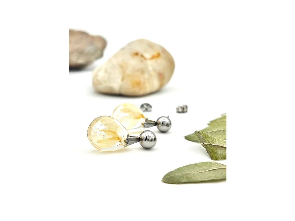 Sú vyrobené zo živice a antialergických komponentov z chirurgickej ocele (puzeta + zarážka). Majú tvar brúsenéj kvapky a puzeta je taká zaujímavá - guľôčková.